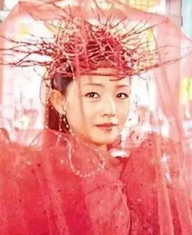 跟杨幂同款的还有大S,同样顶着红色树枝,但大S可能是属于网购中的VIP吧,商家还多赠送一条红色头纱,红色头纱戴上后,感觉仙气了不少。