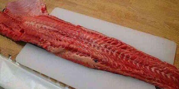 他准备了鱼钩,经过长达四天的不懈努力,终于把这条“巨兽”给钓了上来:竟然是一只长达110公分的“土虱”!