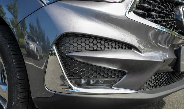 其一,讴歌RDX有着极具辨识度的外观颜值,这点从其前脸设计就可以看得出。大量犀利的线条勾勒出前脸的型面变化,无论是六边形的前进气格栅,还是下侧犹如獠牙般的雾灯区域,都给人一种别样的视觉冲击力。前格栅内嵌有熏黑处理的点阵饰条,将中部的LOGO凸显出来,提升了辨识度。而两侧LED大灯则通过开眼角设计,与中网融为一体,进一步增强了前脸的舒展度。其侧身采用了分段式腰线设计,缓缓上升的腰线走向,配合溜背式车顶设计和前后大尺寸轮毂,都营造出一种向前俯冲的气势,运动气息十足。另外其车尾设计也很有看点,饱满的型面让车尾十分吸睛,而C字型尾灯组在点亮状态下的辨识度也很高。同时下侧双边共双出的圆形排气,则让车尾更具运动气息。